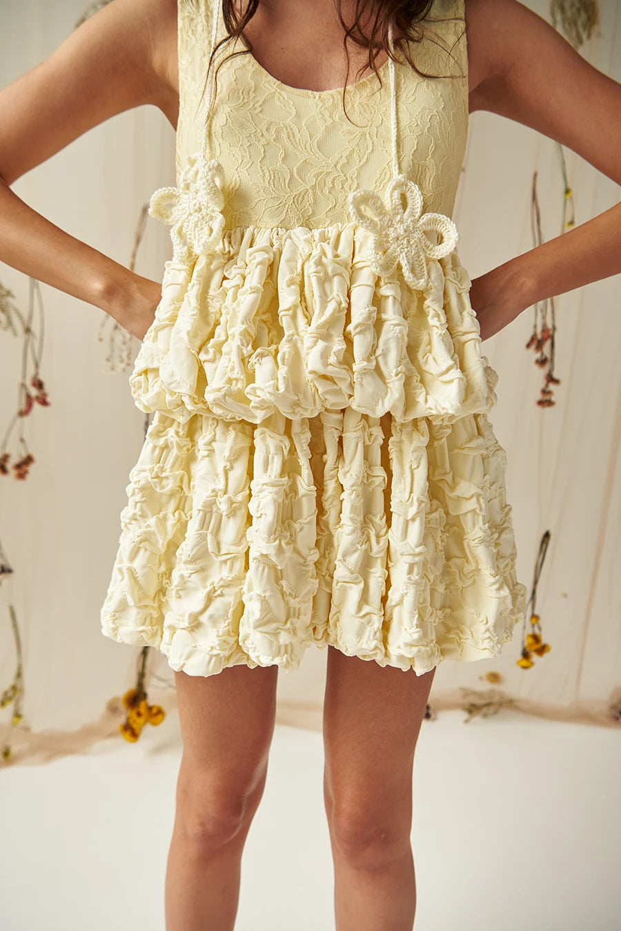 With a unique and exquisite mix of textures, our new ´Love Affair´ mini dress is ideal for special occasions. This dress features ruffled details with a special bohemian & femenine look.