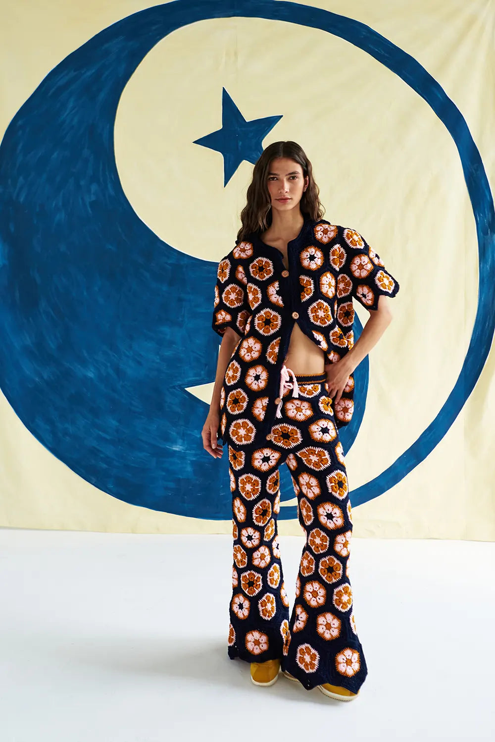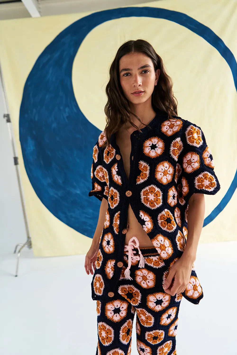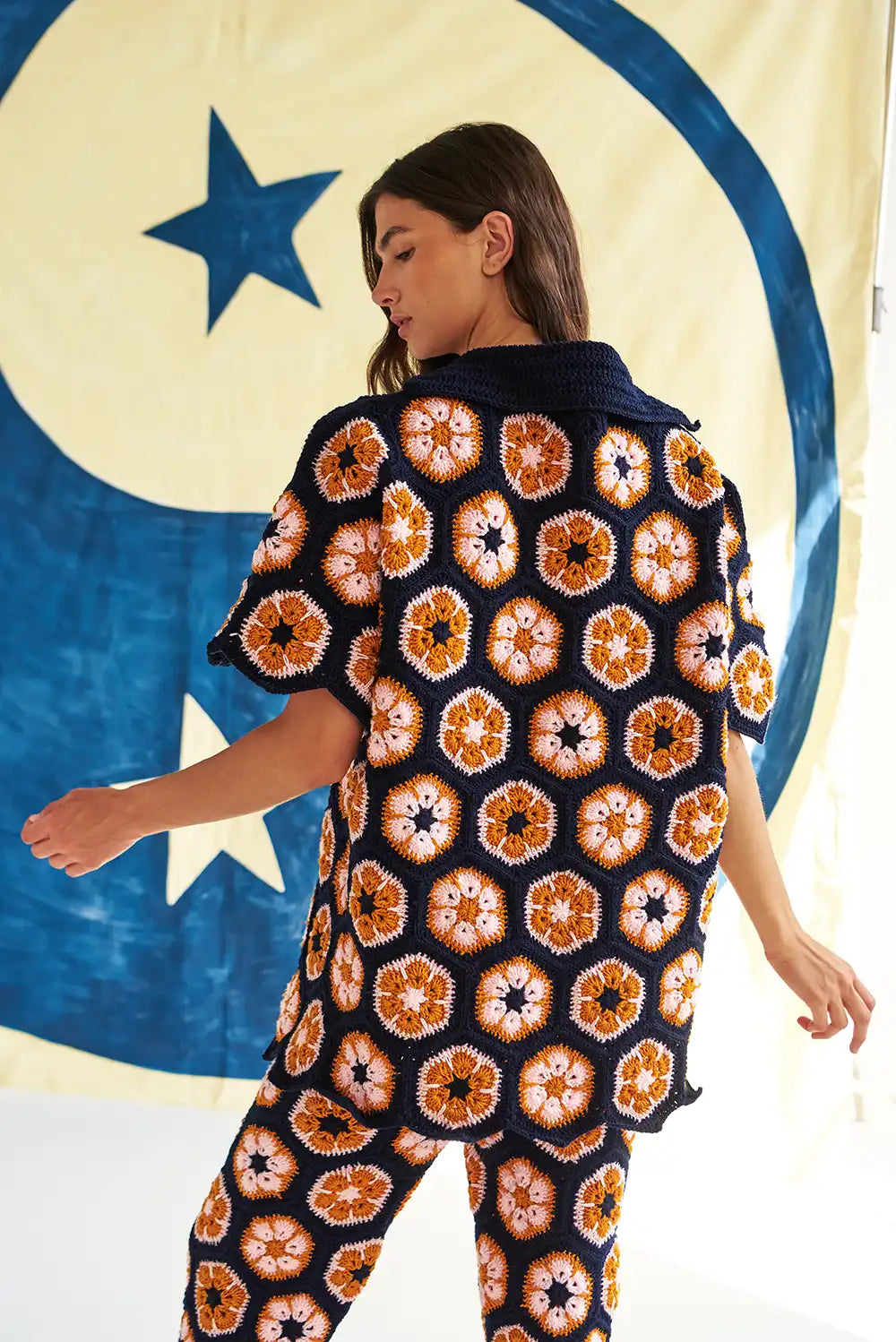 Soulful Piece 100% handmade by Colombian artisans, our 'Dancing In The Wild Tee’ is a unique Featuring exquisite crochet garment. Pair it with our new 'Dancing In The Wild Pants'.